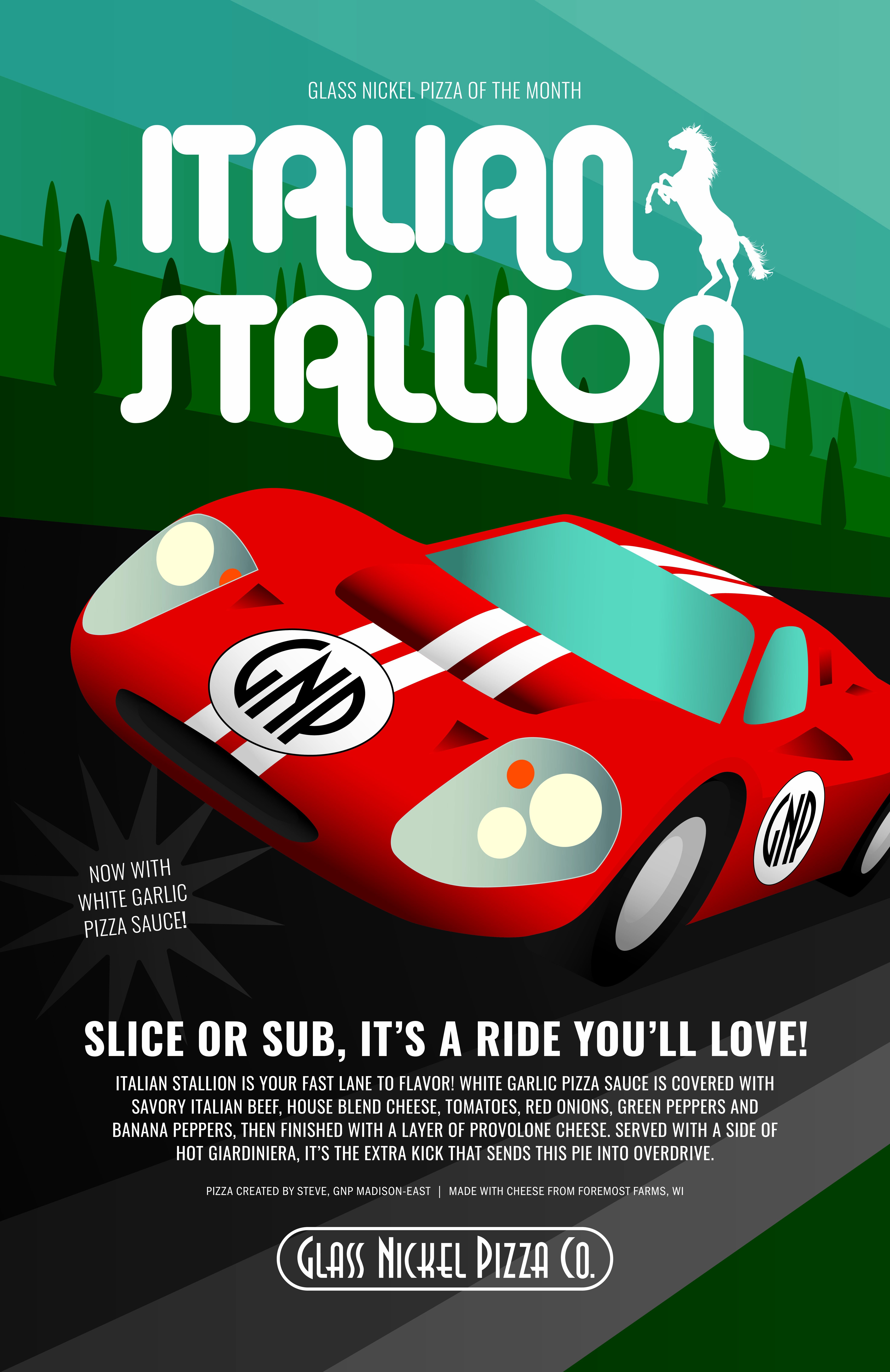 The "Pizza of the Month" began in 2010 at GNP Madison West with a Halloween special, the Pollo Diablo. Our POMs have grown to include special order ingredients, new combinations of current offerings, and recipe ideas from all of our GNP family. Each year we put our heads together for a POM selection party. We bring the best ideas to the table as we start to plan for the year ahead. We pick 6 of our favorites, then have our amazing design team come up with vintage movie poster themed images for each. Now, for the first time ever, we have collected and organized a history of ALL of our Pizza of the Month creations in one place! Take a look to see what our current feature is, the pizzas you loved from the past, which ones you might have missed, and which ones you hope we bring back!